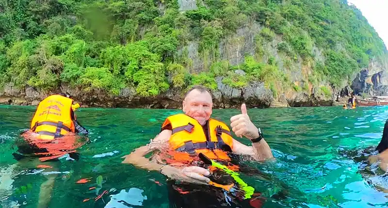 - 11.00 Arrive to Tonsai Bay to change to Snorkelling boat and go to snorkelling at Coral Bay.